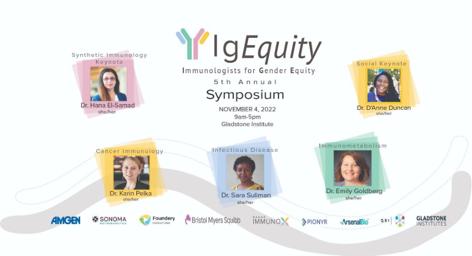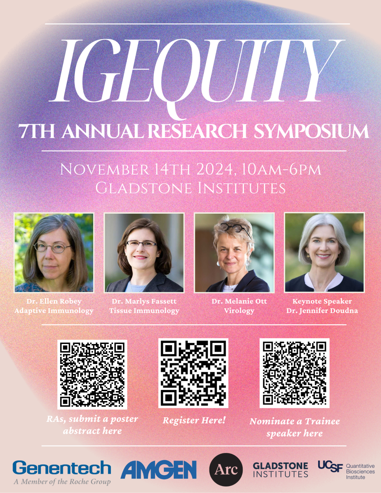 Please join us for our 2023 Gender Equity in Immunology Symposium on Friday, November 17th at the Gladstone Institute on the UCSF Mission Bay Campus. This year, we are partnering with Women in Life Sciences (WiLS) to highlight the research of gender minorities at the intersection of scientific fields. Check back in the coming weeks for more details regarding section topics, speakers, and how to RSVP.