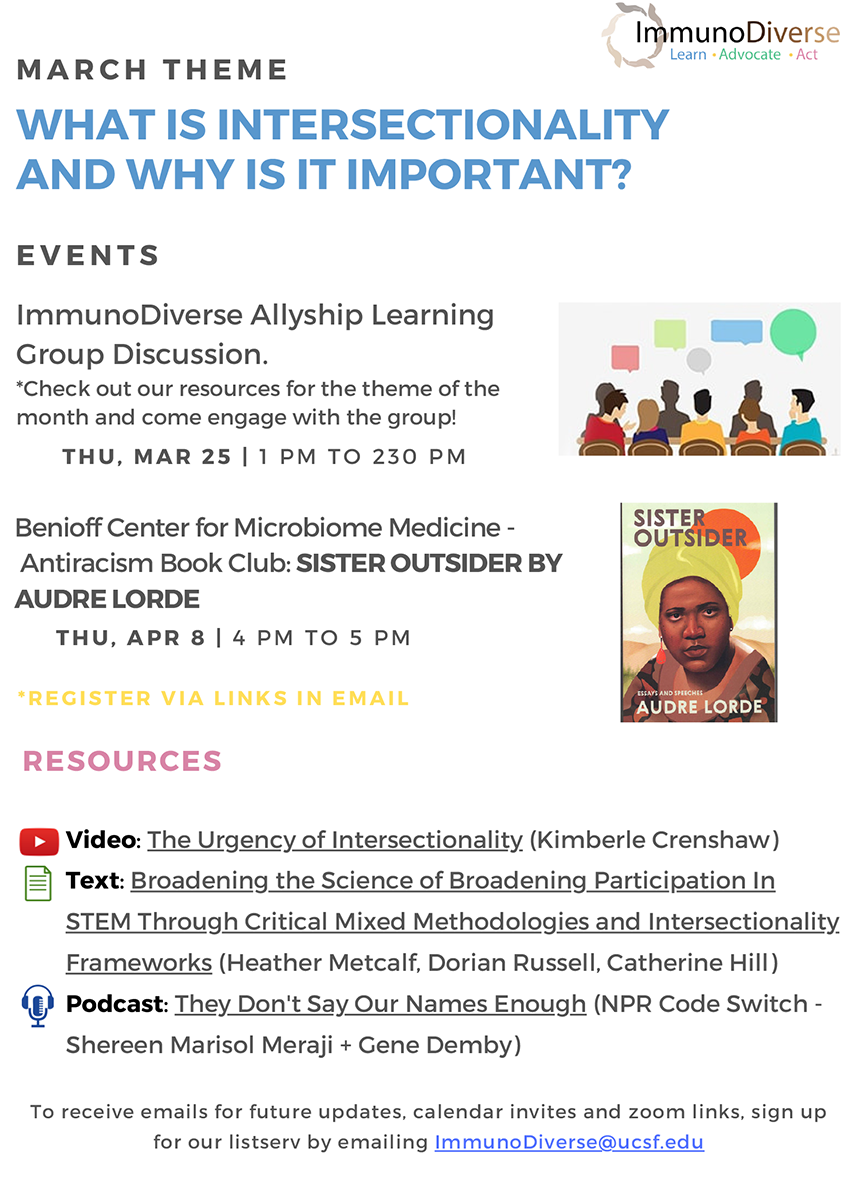 The ImmunoDiverse Allyship Learning Team is a trainee group organization focused on creating a welcoming, inclusive, and anti-racist environment at UCSF.